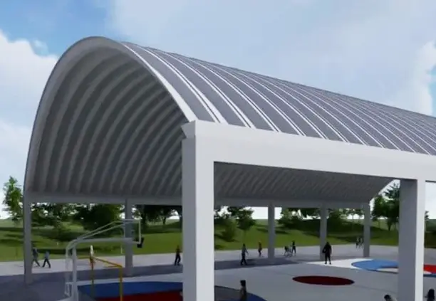 Nuestra lámina para arcotechos es idónea para elaborar cubiertas con diseño curvo, necesarias en edificaciones que requieren optimizar el área disponible: naves industriales, almacenes, fábricas y bodegas. Además, se utiliza en proyectos en los que es importante prescindir de soportes en el espacio principal, como canchas, tiendas departamentales, auditorios, albercas olímpicas y gimnasios.